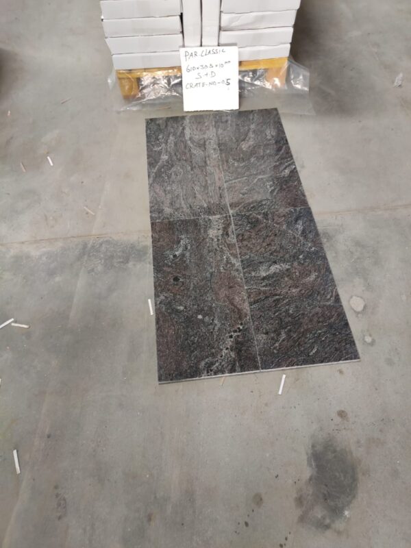 Granit Paradiso Classic należy do najbardziej rozpoznawalnych i cenionych indyjskich granitów dekoracyjnych. Jego oryginalna kolorystyka opiera się na połączeniu burgundu, fioletu, brązu oraz ciemnych akcentów, tworzących efektowny, dynamiczny rysunek. Płytki są niepowtarzalne – każda z nich prezentuje naturalne ułożenie żył i smug, które nadają wnętrzom wyjątkowy charakter.