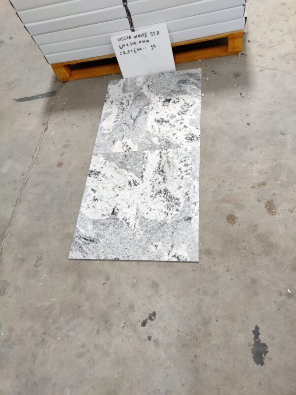 Płyty Viscont White doskonale prezentują się w zestawieniu z czarnymi akcentami, tworząc nowoczesny kontrast. Są idealnym wyborem dla osób szukających trwałego, ponadczasowego i estetycznego kamienia w jasnej tonacji.